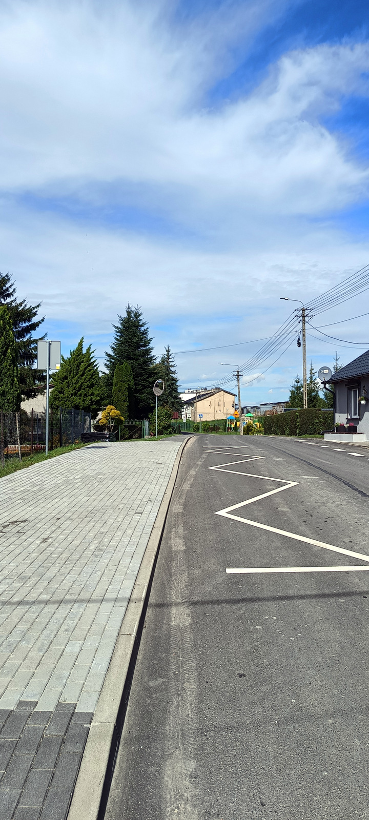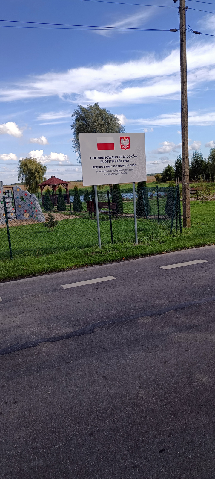 W dniu 10 lipca 2025 roku zostały zakończone prace budowlane polegające na przebudowie drogi gminnej 0413129C w miejscowości Święte na odcinku 417 metrów. Wykonano frezowanie popękanej nawierzchni bitumicznej gr. 7 cm na powierzchni 2650 m2. Ułożono dwie warstwy nawierzchni bitumicznej w postaci warstwy wyrównawczej z betonu asfaltowego AC16W grubości 4 cm oraz warstwy ścieralnej z betonu asfaltowego AC11S gr. 4 cm - pasy ruchu i pobocze utwardzone. Celem uspokojenia ruchu pojazdów oraz poprawy bezpieczeństwa pieszych wykonano wyniesione przejście dla pieszych z kostki betonowej gr. 8 cm o wymiarach 5,0 x 6,0 m. W miejscu przejścia dla pieszych oraz przystanku autobusowego poszerzono chodnik do 2,0 m na odcinku 2 x 16,0 m. Wykonano oznakowanie poziome rozdzielające pobocze utwardzone od jezdni, linię łamaną przy przystanku autobusowym i przejście dla pieszych. Wykonano oznakowanie pionowe w postaci znaków informacyjnych, zakazu, nakazu i ostrzegawczych w ilości 14 szt. zgodnie ze stała organizacja ruchu.